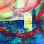 Een globale impressie van het schilderij "Neutrino,s" 200x200cm.