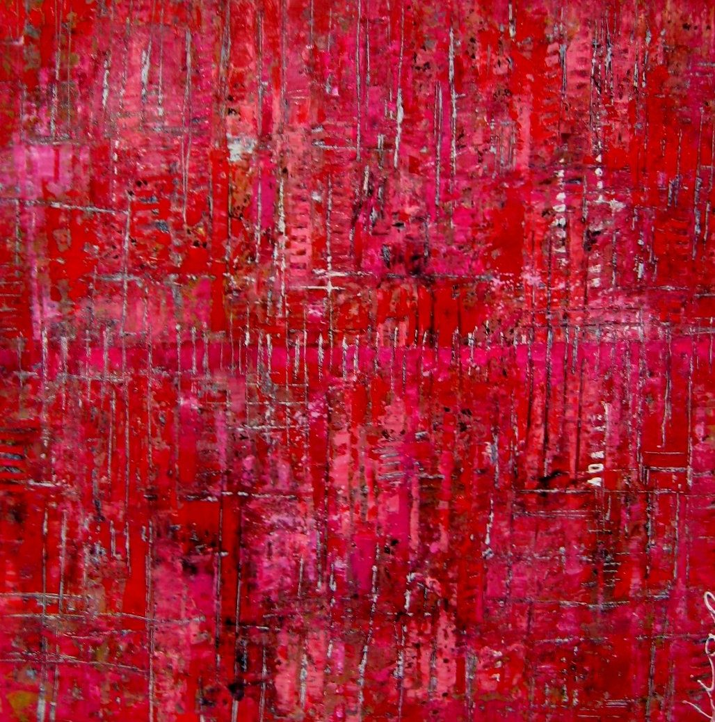 Een globale impressie van het schilderij "Red Velvet" 70x70cm.