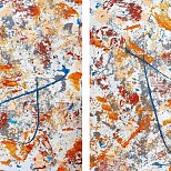 Abstract doek in oud roze tinten, dat zowel in de lengte als in de breedte kan hangen.