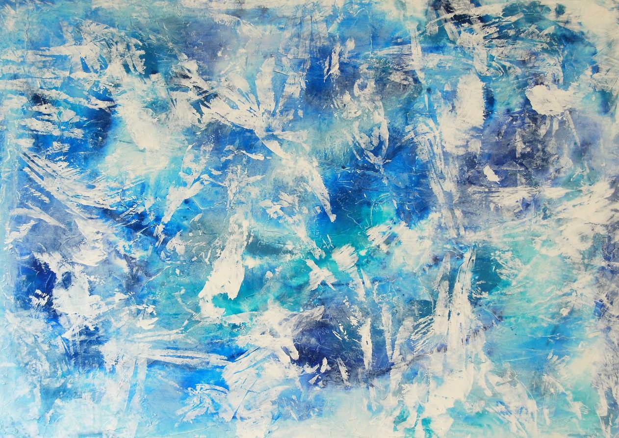 Een globale impressie van het schilderij "Frozen Flowers" 140x100cm.