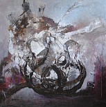 Een globale impressie van het schilderij "Zonder titel" 70x70cm.