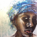 Een globale impressie van het schilderij "Amorada" 100x100cm.