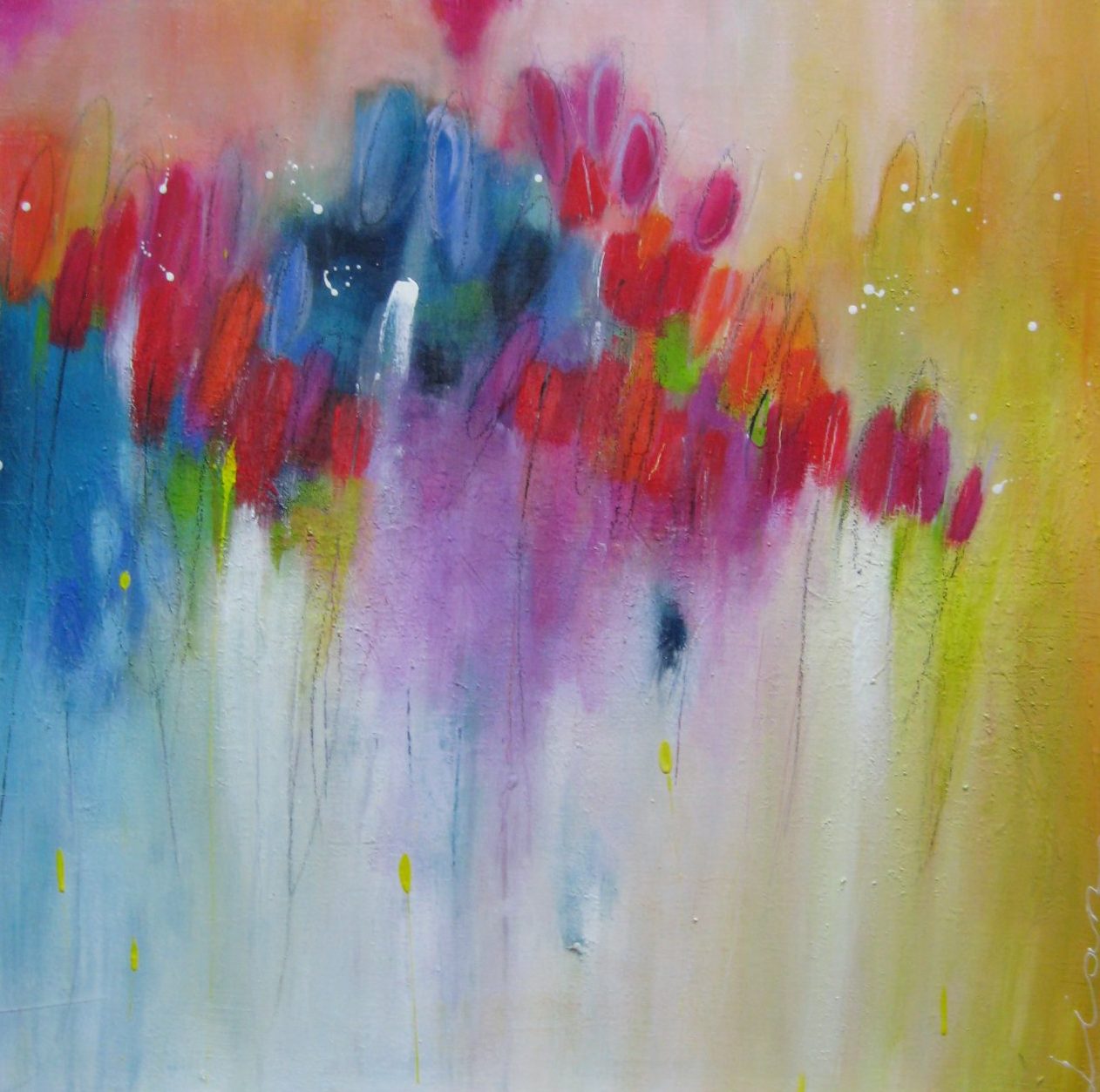 Een globale impressie van het schilderij "Midsummer" 70x70cm.
