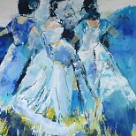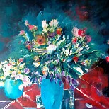 Een globale impressie van het schilderij "Vazen met bloemen" 100x100cm.