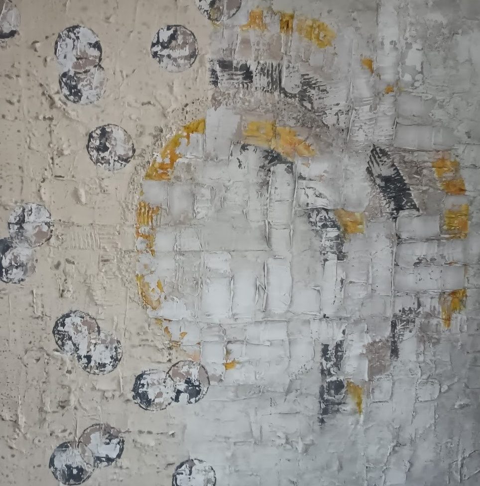 Een globale impressie van het schilderij "Ingetogen" 100x100cm.