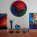 Werk gemaakt op paneel en gegoten met pigmenten in epoxy, waardoor er een glimmende laag ontstaat.