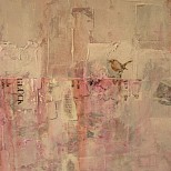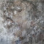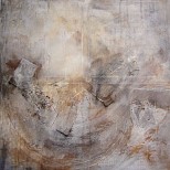 Een abstract werk, met veel textuur in prachtige herfstkleuren.