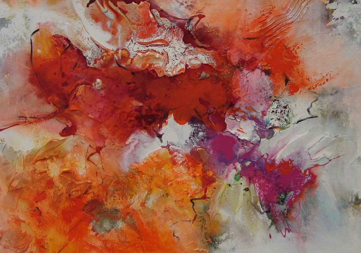 Een globale impressie van het schilderij "Dwarrelen als een vlinder 4" 120x100cm.