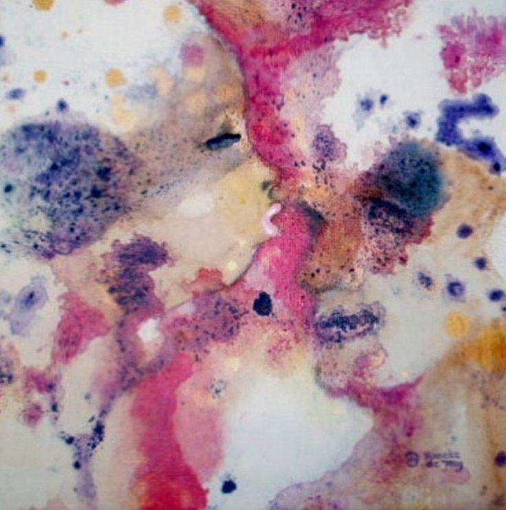 Een globale impressie van het schilderij "Kus" 20x20cm.
