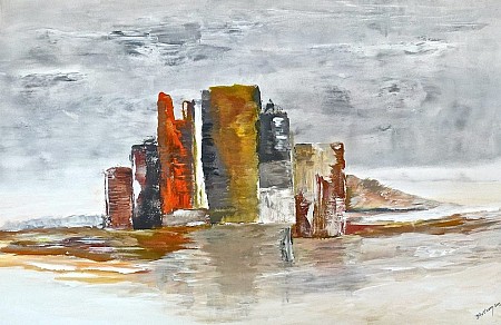 Een globale impressie van het schilderij "Burcht" 90x60cm.