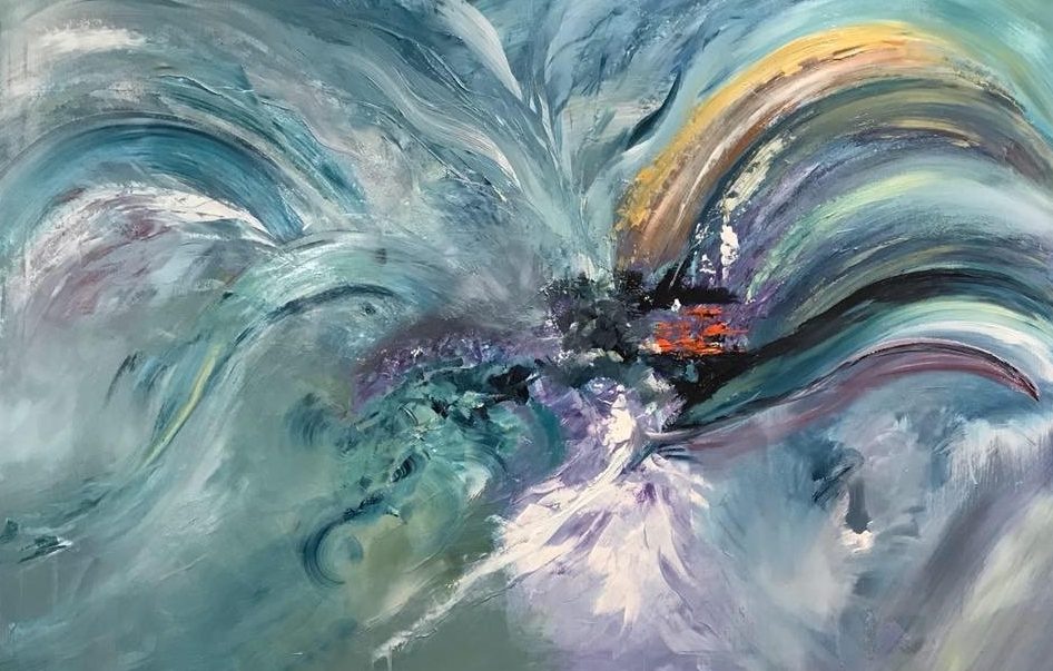 Een globale impressie van het schilderij "Flowerpower" 150x100cm.