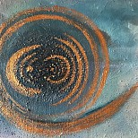 Een globale impressie van het schilderij "Blue energie" 50x50cm.