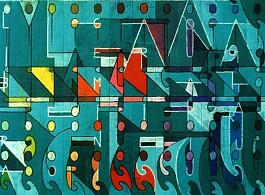 Constellatie in turquoise - olieverf op paneel, 1996.