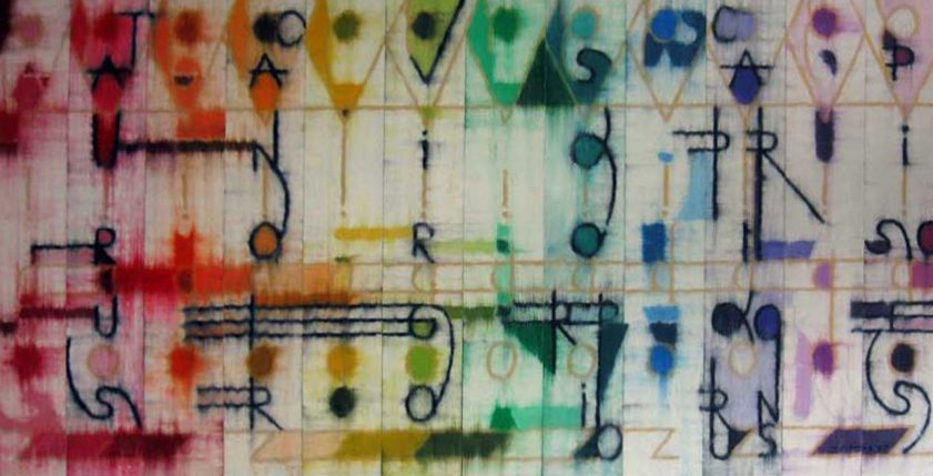 Een globale impressie van het schilderij "Veelklank" 121x70cm.
