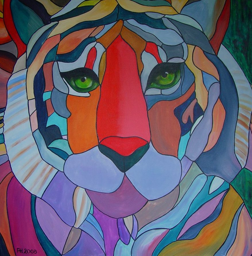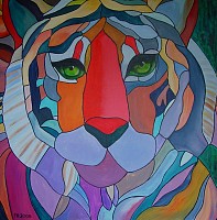 Een globale impressie van het schilderij "Tijger" 90x90cm.
