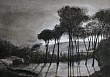 Gewassen pentekening van Italiaans landschap, inclusief passepartout en ingelijst in een schitterende lijst met kwartsglas. Buitenmaat 40 x 50 cm.
