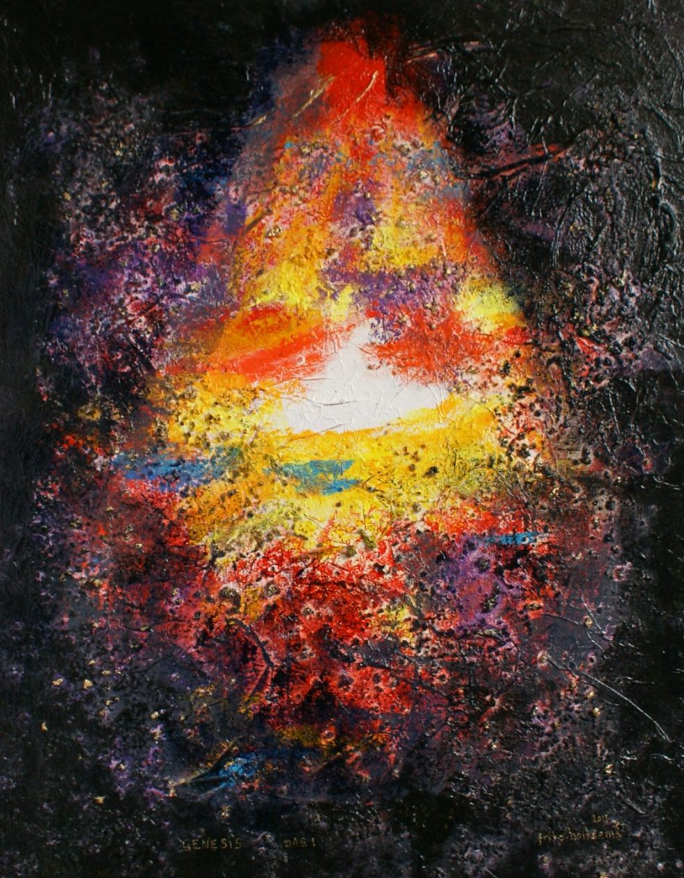Een globale impressie van het schilderij "Genesis dag 1" 40x50cm.
