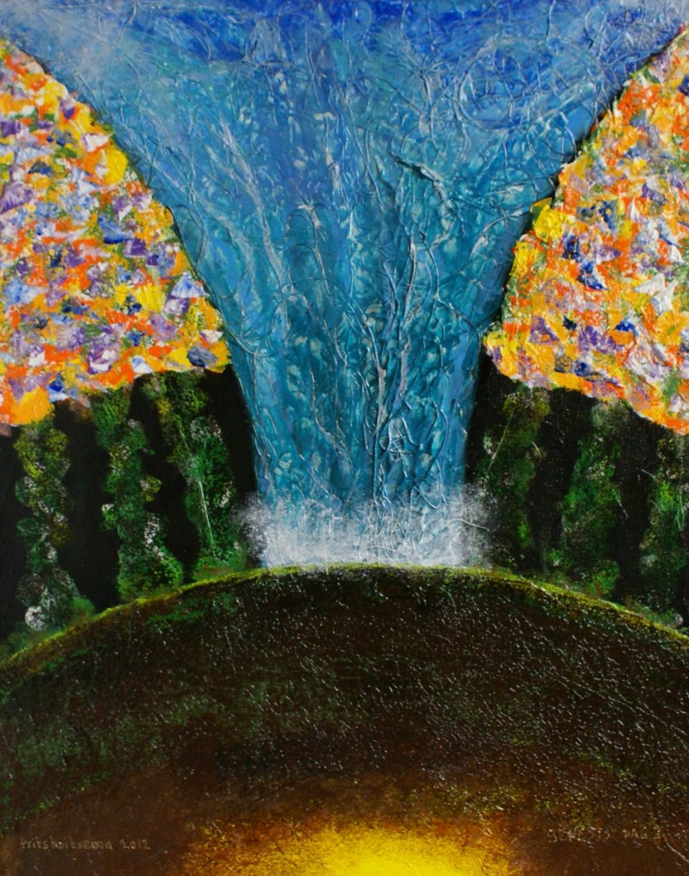Een globale impressie van het schilderij "Genesis dag 3" 40x50cm.