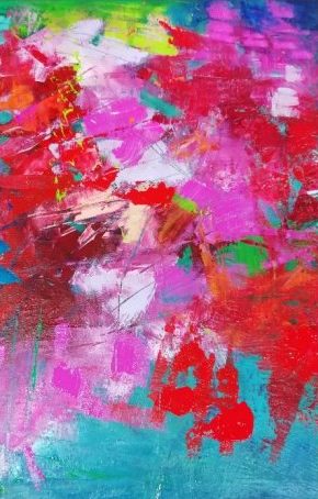 Abstract werk opgebouwd uit diverse lagen. Kleurrijk, xancas.