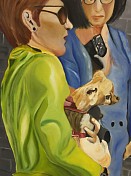 Een globale impressie van het schilderij "Dames met hondje" 60x70cm.
