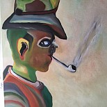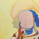 Olieverf schilderij rood zwart blauw zijn hoofd kleuren gepassioneerd van schilderen van mensen op plaatsen