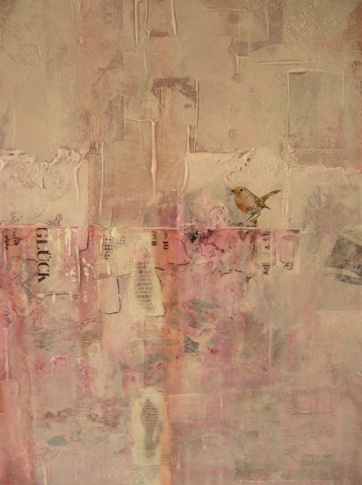 De textuur lagen worden opgebouwd met allerlei soorten papier en acryl verf.