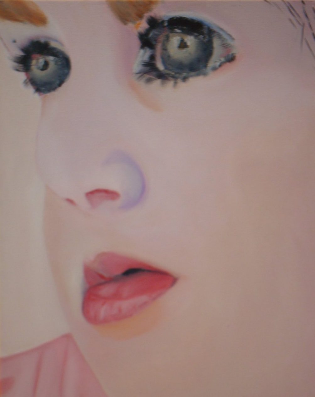 Een globale impressie van het schilderij "Denkend kijkend meisje" 40x50cm.