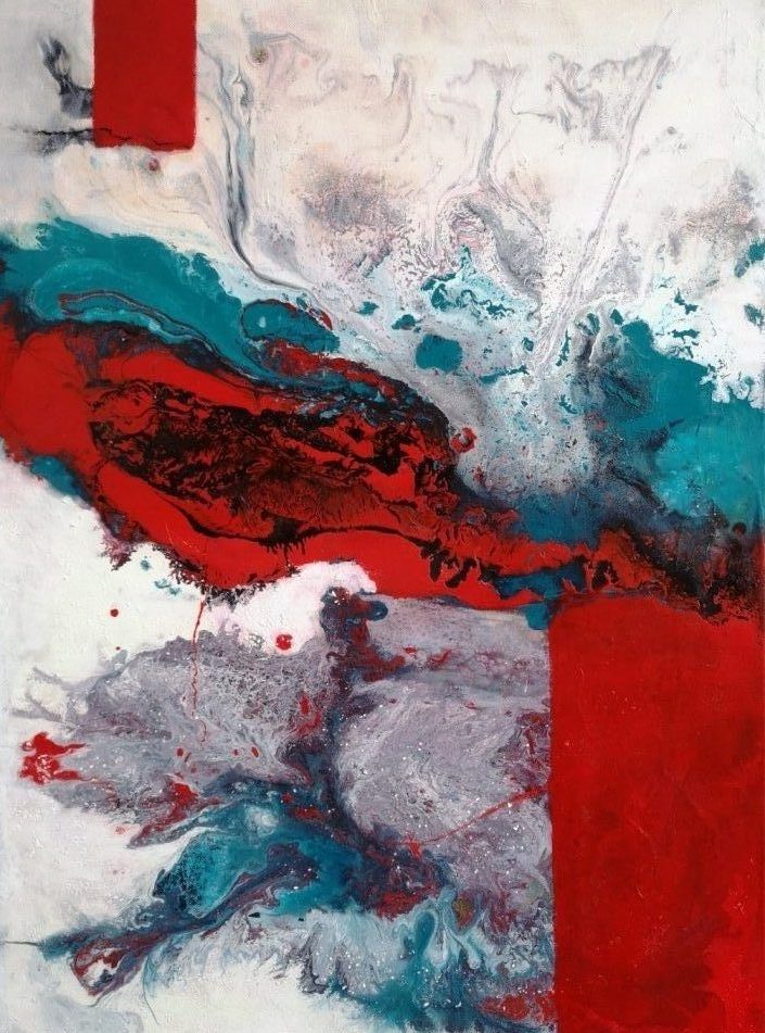 Een globale impressie van het schilderij "Wegen in rood" 60x80cm.