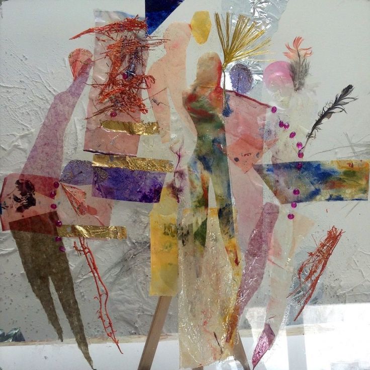 Werk is op glas, er op is zijde ,kralen ,bladgoud en Japans zijde papier verwerkt.