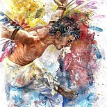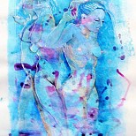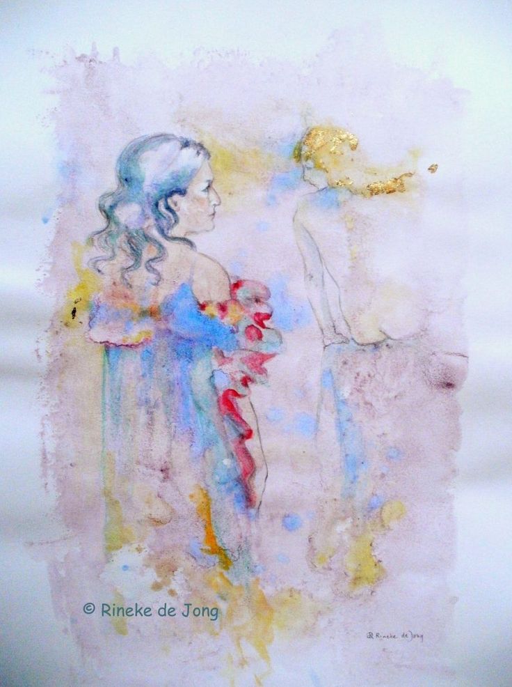 Jacqueline 3, potlood, acryl en bladgoud op zwaar wit papier. Helaas krijg ik de foto niet zo dat het papier wit is.