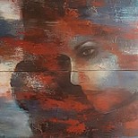 Een globale impressie van het schilderij "Abstract" 100x100cm.