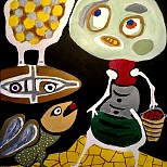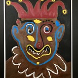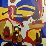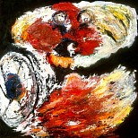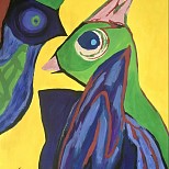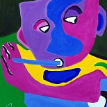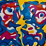 Het schilderij is in de stijl van Karel Appel (latere jaren) gemaakt. Acryl op Canvas doek.
