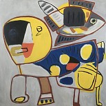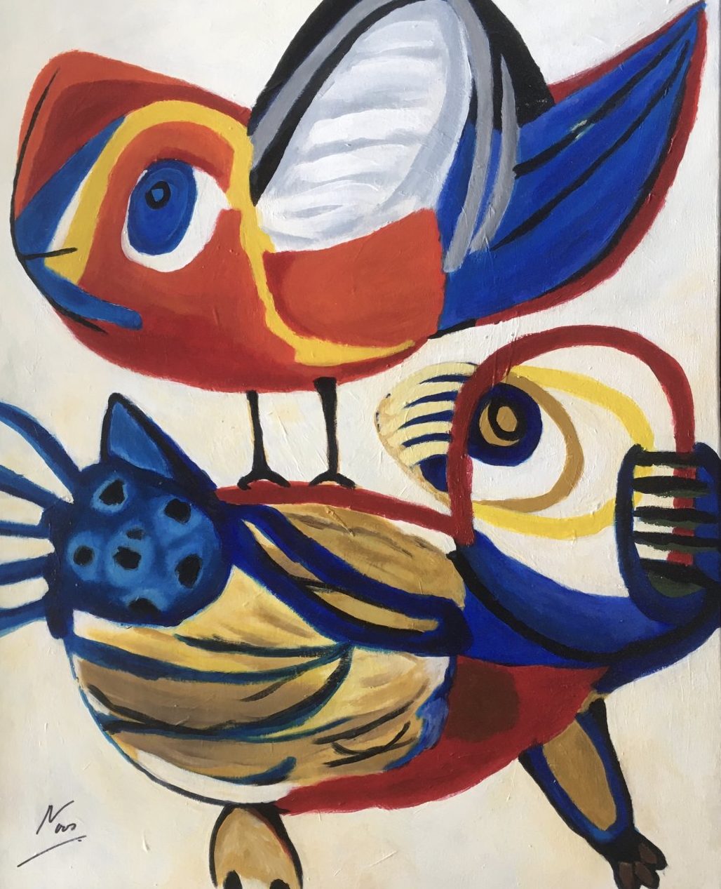 Werk naar de Cobrabeweging van o.a Karel Appel. Acryl op linnen doek.