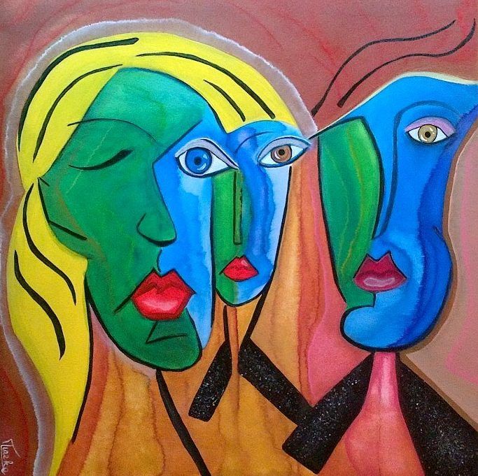 Een globale impressie van het schilderij "Two against one" 60x60cm.