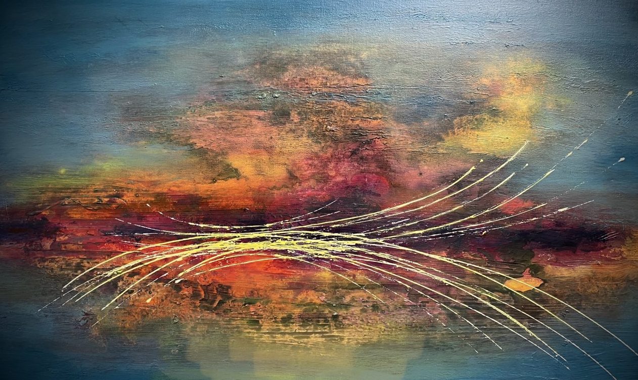 Een globale impressie van het schilderij "Meet me at the lakeside" 100x60cm.