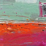 In een schilderij dat straalt! Het straalt positiviteit uit. Is vol kleur, roze, groen, blauw, wit en grijs. Het is een schilderij die je moet voelen. Er is gebruik gemaakt van een horizontaal en verticaal lijnenspel. Dit brengt orde en rust in de chaos van spetters en klodders.
