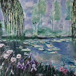 Een globale impressie van het schilderij "Tuin" 100x100cm.