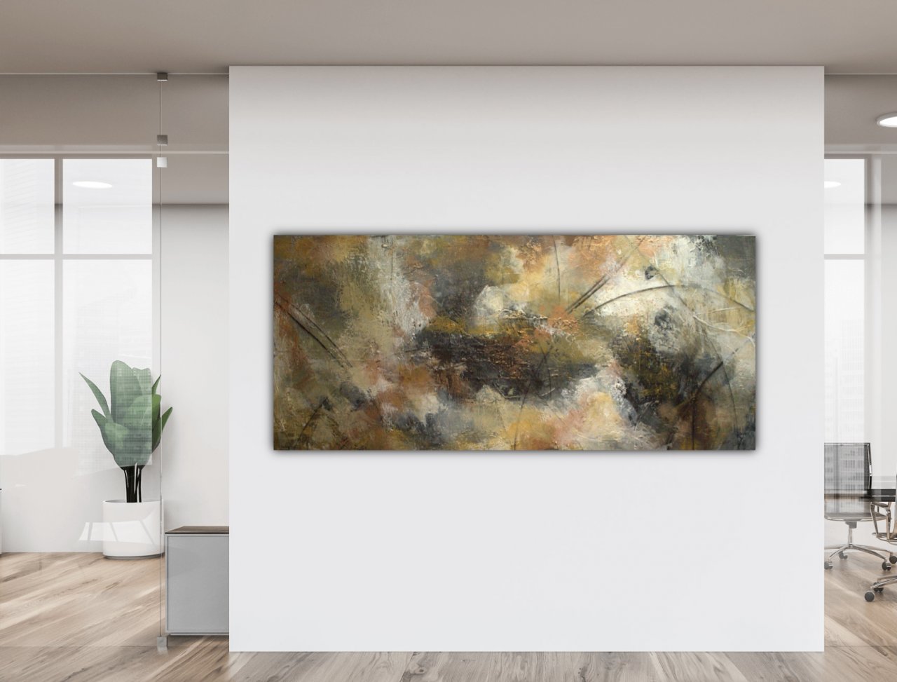 Een globale impressie van het schilderij "Heelal" 180x80cm.