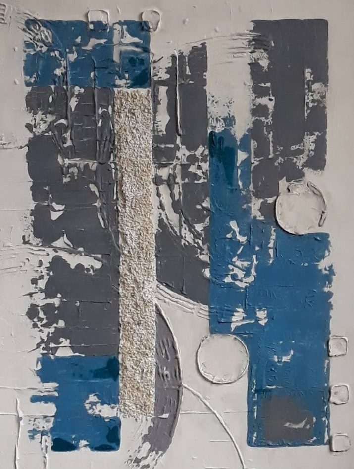 Het bestaat uit vele lagen en is zeer rustig aan de wand, straalt positiviteit uit.