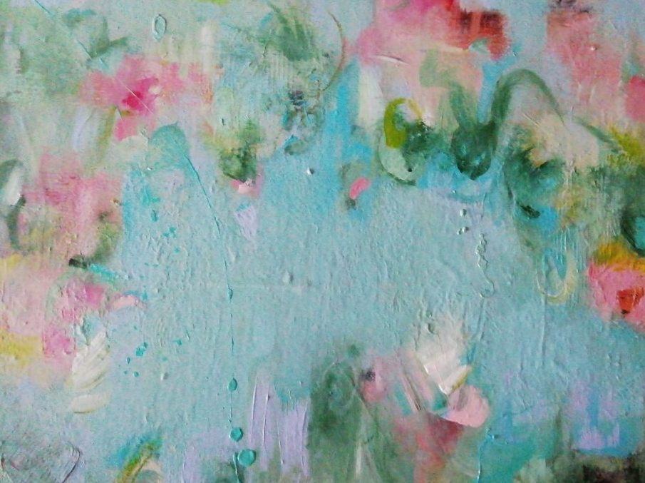 Groot abstract schilderij. In blauw groene tinten. Het doek kan zowel horizontaal als verticaal worden opgehangen.