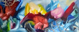 Een globale impressie van het schilderij "Tulips in the wind" 120x40cm.