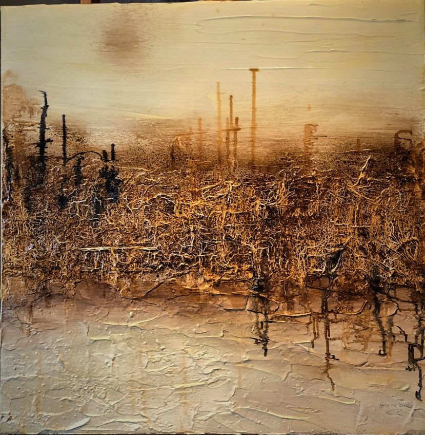 Een globale impressie van het schilderij "Roest" 80x80cm.
