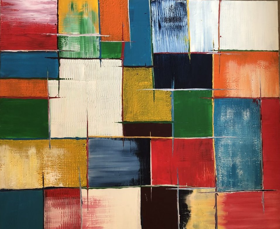 Een globale impressie van het schilderij "Kleurenfantasie" 120x100cm.