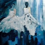 Een globale impressie van het schilderij "Wilde bloemen" 100x100cm.