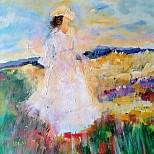 Een globale impressie van het schilderij "Prairietuin" 100x100cm.