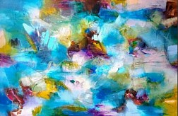 Groot abstract werk. Vrij werken en heerlijk los gaan dat is wat ik het liefste doe. Laag na laag opbouwen ,even dag afstand van nemen .en verder met het schilderproces.