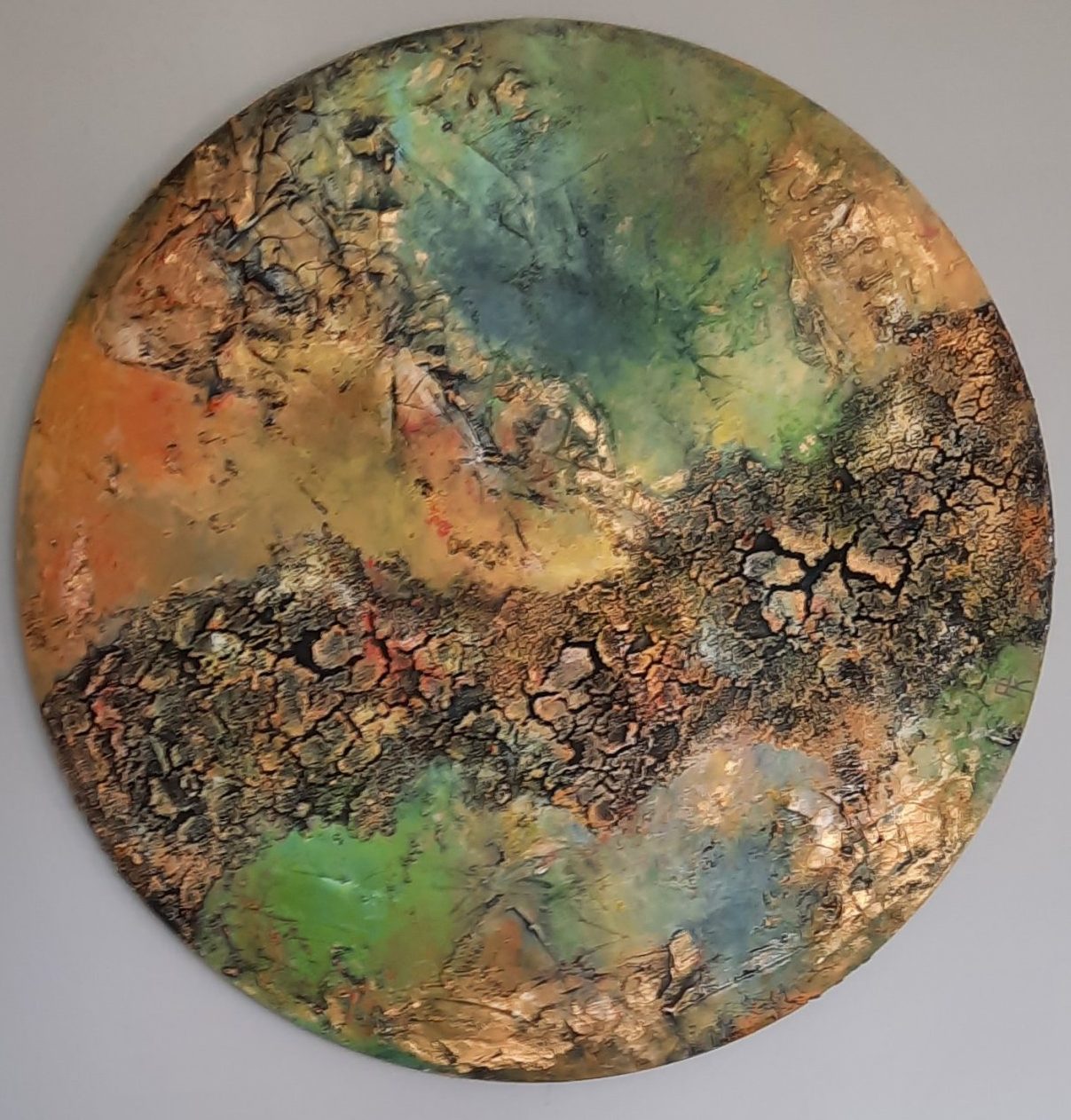 Rond canvas materiewerk op canvas, doorsnee 80 cm