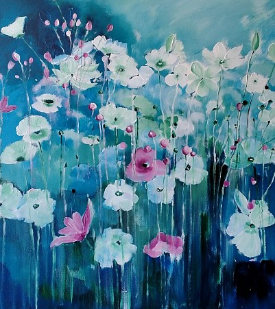 Een globale impressie van het schilderij "Veldbloemen (2)" 100x100cm.