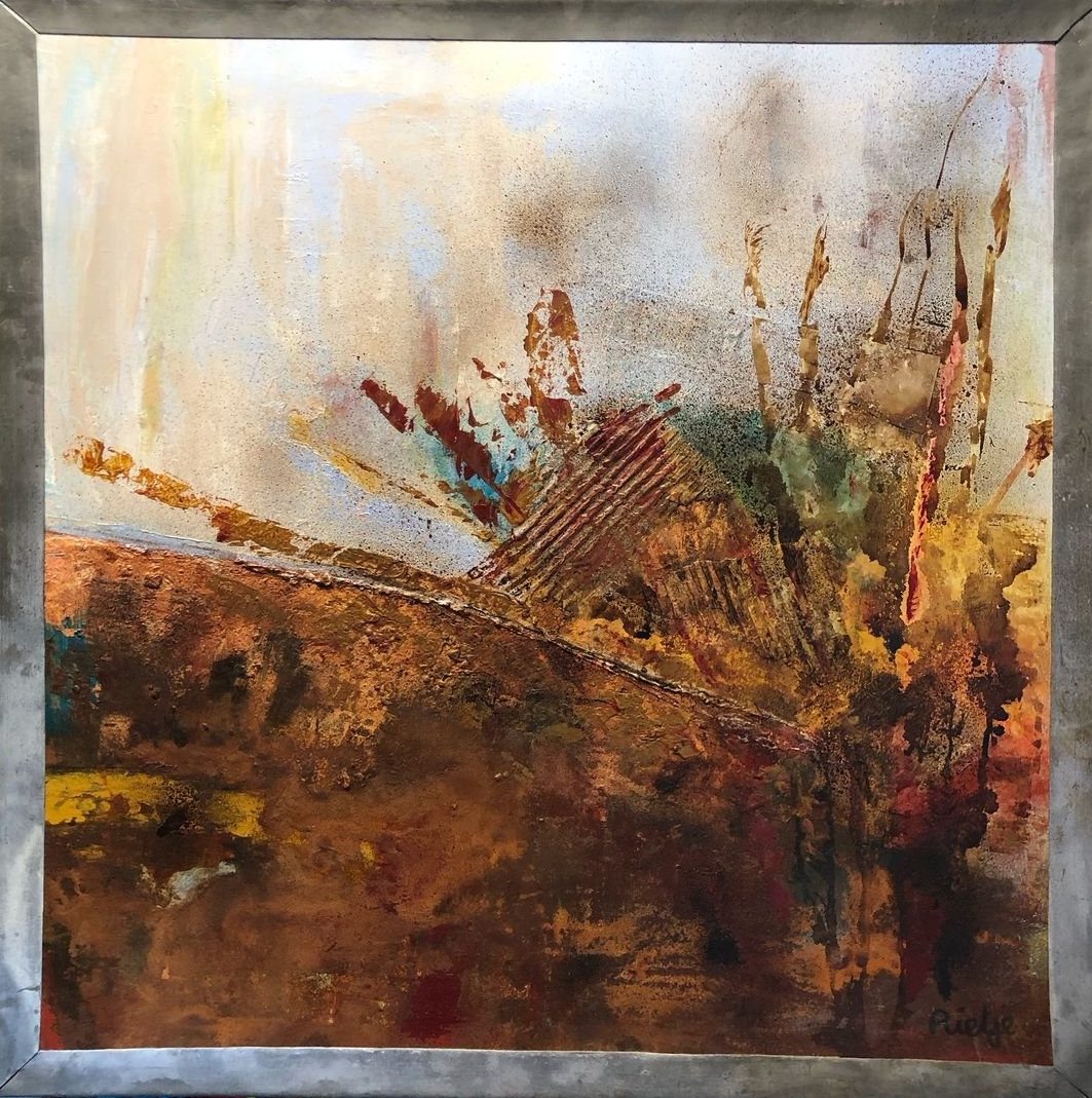 Uniek werk van RietjeArt, de kleuren van het schilderij kleuren mee met de Loden lijst.