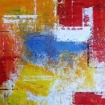 Een globale impressie van het schilderij "Blusher" 100x100cm.